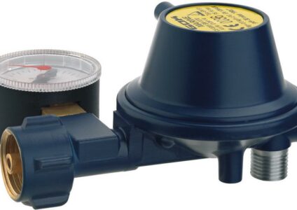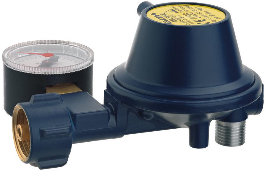 GOK Niederdruckregler für Marine, 30mbar, 90° Abgang, mit Manometer