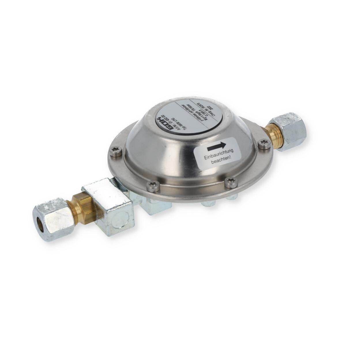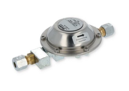 zum Anschluss von 30 mbar Caravans bzw. Motorcaravans (Reisemobile) an 50 mbar Standleitungen der Niederdruckregler wird in die Standleitung vor dem Fahrzeug montiert und regelt den Druck von 50 auf 30 mbar Der Regler ist nicht geeignet für den festen Einbau im Fahrzeug, ausschließlich für stationäre Anlagen. Technische Daten: Durchfluss 1,5 kg/h Gasdruck:30mbar Anschluss: RVS 8 x RVS 8 mm