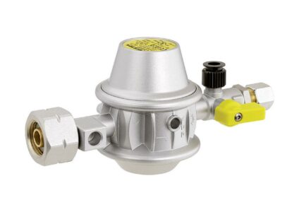 Niederdruckregler Typ EN61-DS PS 16 bar zum Anschluss an fest am Fahrzeug installierte Gasbehälter zur Druckregelung auf den Nenndruck des Gasgerätes. Bestehend aus: Niederdruckregler mit integrierter Überdrucksicherheitseinrichtung ÜDS mit Prüfventil. Zulassung: EG-Baumusterprüfung nach DGR. Typ EN61-DS GF x RVS 8 mm 30mbar 1,5 kg/h