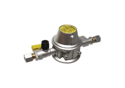 Regleranlage 30 mbar mit großem Anschlussgewinde für Gastanks oder Gasflaschen. Mit vorgeschriebenem Prüfanschluss, über den die Gasanlage bei leerem Tank auch über eine Gasflasche versorgt werden, bzw. ein Grill außen angeschlossen werden kann. Niederdruckregler Typ EN61-DS PS 16 bar zum Anschluss an fest am Fahrzeug installierte Gasbehälter zur Druckregelung auf den Nenndruck des Gasgerätes. Bestehend aus: Niederdruckregler mit integrierter Überdrucksicherheitseinrichtung ÜDS mit Prüfventil….