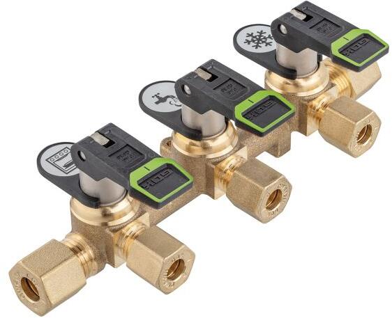 Verteilerblock Marine mit ergonomischem Kipphebel für einfache Bedienung. Betätigungselement: ergonomischer Kipphebel farbliche Kennzeichnung der Offen- (grün) bzw. Geschlossenstellung (rot) geringer Druckverlust durch optimierte Funktion mit Befestigungskonsole inklusive Clips mit Symbolen zur Kennzeichnung der Verbrauchsgeräte inklusive Blindstopfen im Ausgang DIN-DVGW-Baumusterprüfzertifikat. mit Überwurfmutter Typ M-MS und Schneidring Typ D-MS Technische Daten: Material: Messing Ausführung: lang…