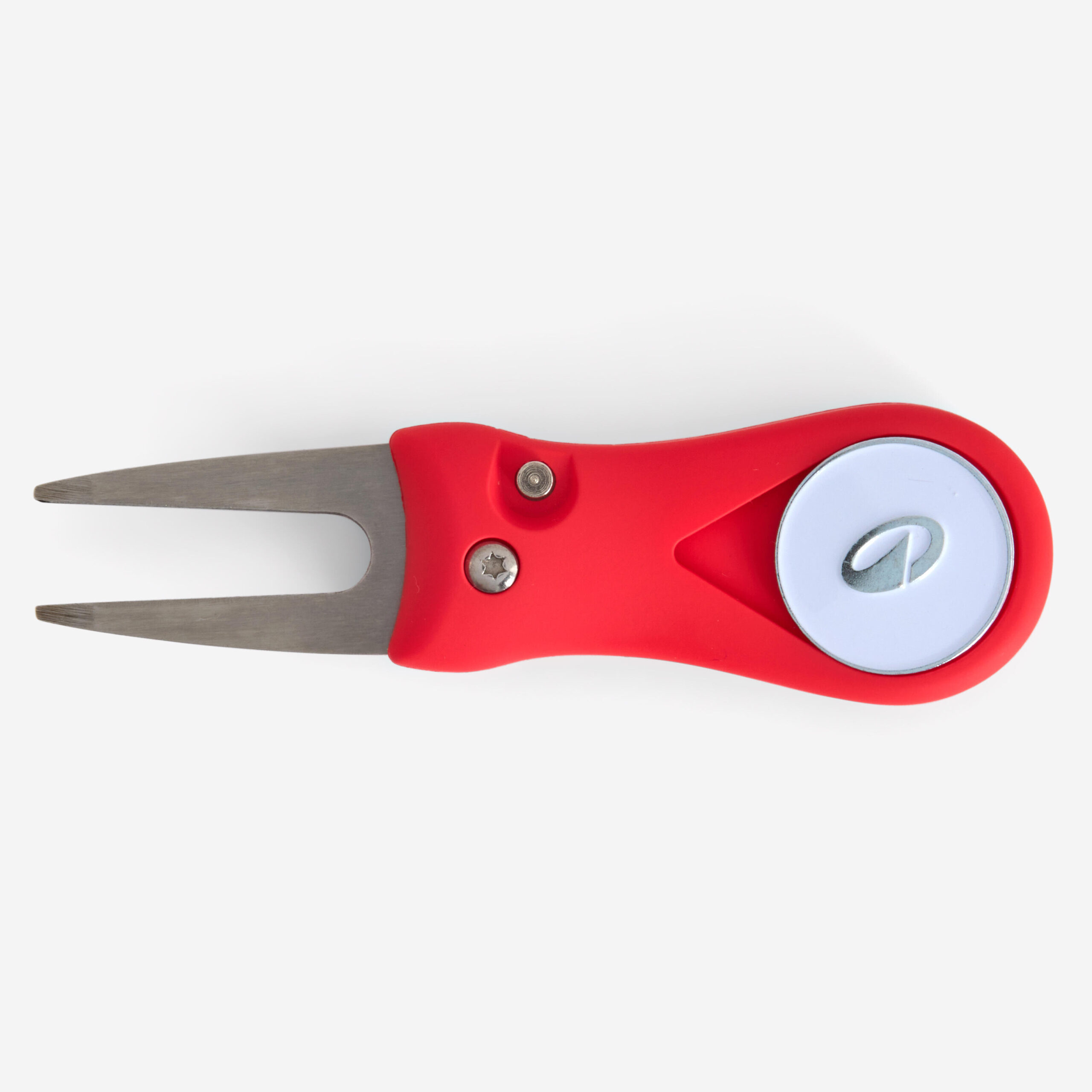 Die platzsparende Pitchgabel lässt sich automatisch aus- und einklappen. Sie besitzt einen integrierten Ballmarker. Kompakt::Klappbare Pitchgabel, daher platzsparend zu verstauen|Vielseitigkeit::Magnetischer Ballmarker im Griff integriert