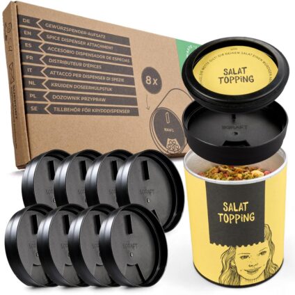 Der ultimative Gewürzdosenaufsatz ermöglicht Ihnen eine perfekte Gewürzdosierung. Dieser innovative Aufsatz passt nahtlos auf die gängigen Gewürzstreuer Just Spices sowie auf Alternativen wie Le Gusto von Aldi, Kania von Lidl und viele Mehr. Die perfekte Kombination aus Küchenzubehör, Umweltbewusstsein und Benutzerfreundlichkeit.Der Einsatz für Gewürzstreuer besticht durch sein universelles Design, das mit den meisten Gewürzdosen kompatibel ist, und bietet vier verschiedene Dosiergrößen zur Auswahl:…