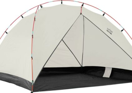 Genießen Sie das Strandleben mit dem neuen innovativen Tonto Beach Zelt. Das Strand-Zelt kann schnell auf- und abgebaut werden. Die Firststange und die beiden kleinen Stangen sind am Zelt befestigt, die Klett-Sandtaschen können für guten Stand mit Sand gefüllt werden, so dass Tonto auch ohne Abspannung aller Abspannleinen aufgestellt werden kann. Das Zelt bietet zuverlässigen UV-Schutz und schützt vor Wind und Sonne. Technische Daten: Gestänge: Fiberglas Wasersäule Zelt: 3.000 mm Wassersäule Boden:…