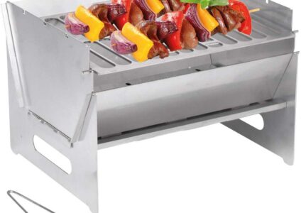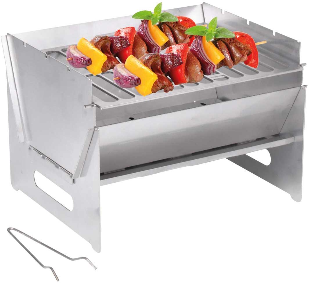 lässt sich einfach transportieren aus hochwertigem Edelstahl mit Griffmulde im Gestell ideal für Backpacker oder Motorradtourer mit wenigen Handgriffen aufgebaut und funktionsbereit schnell wieder zusammengefaltet bzw. auseinandergenommen noch kleineres Packmaß im Vergleich zu den Faltgrills optimale Zubereitung des Grillgutes durch den 3-fach höhenverstellbaren Grillrost oder durch Einlegen von bis zu 3 Grillspießen Grillkörper aus 1,5 mm und Grillrost aus 3 mm Edelstahl lange Brenndauer dank großem…
