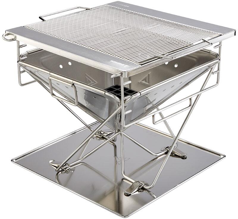 Stabiler Grill mit zahlreichen Features. Öffnungen im oberen Bereich der Feuerschale verhindern die Verwindung des Materials, während Spalten an den Scharnieren eine perfekte Belüftung gewährleisten. Um zu verhindern, dass Kohle auf den Boden fällt und den Grillplatz verschmutzt, ist der Grill mit einer Bodenplatte aus rostfreiem Edelstahl ausgestattet. Für optimale Kontrolle ist der Grillrost in drei Stufen höhenverstellbar. Inkl. robuster Transporttasche. Auch als Feuerschale verwendbar. Technische…