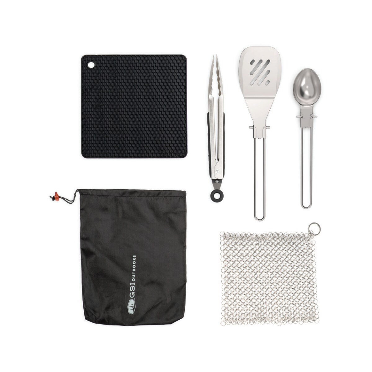 Das ultimative kompakte Kochwerkzeug-Set. Der Griff der dreistufigen Löffelkelle lässt sich umklappen, um eine kompakte Aufbewahrung zu ermöglichen, oder lässt sich zu einer Schöpfkelle oder einem Löffel ausklappen. Der Zwei-Positions-Spatelgriff lässt sich auch zur kompakten Aufbewahrung umklappen oder in einen großen Klingenspatel ausklappen. Die flache Vorderseite des Spatels dient als effizienter Schaber und großer Eierflipper. Der Kettenhemd Topfuntersetzer aus Edelstahl, schützt die Oberflächen…