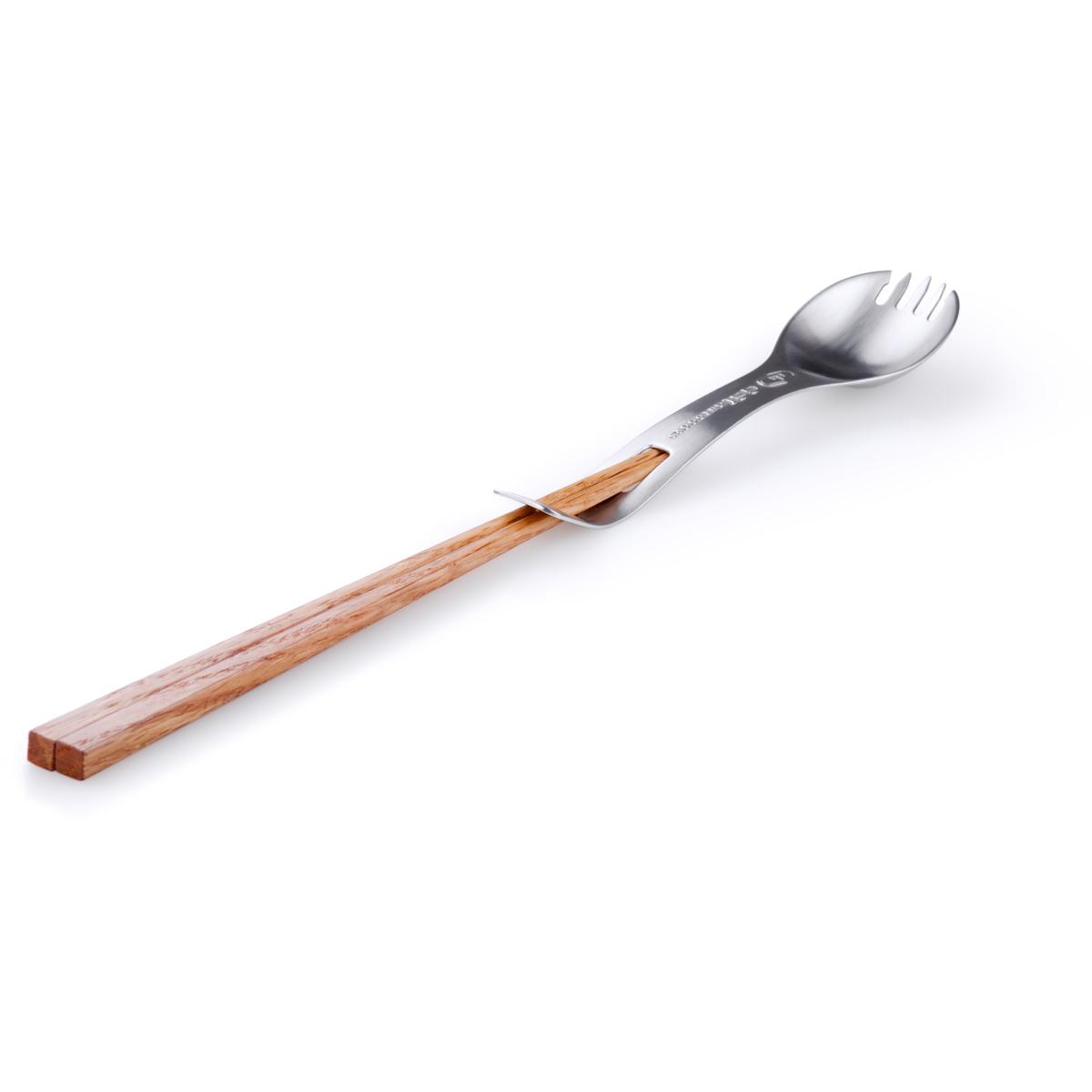 Dieses einzigartige, ultra-saubere Camp-Utensil bietet die Funktion eines Löffels, einer Gabel und eines Satzes von Essstäbchen. Wenn sie zusammengesetzt werden, bilden sie einen langstieligen Löffel, der ideal ist, um das letzte bisschen Essen aus einem schmalen Rucksacktopf oder einem Beutel mit rehydrierter Mahlzeit herauszuschaben. Stäbchen gleiten in den Foon-Griff und bilden ein langstieliges Utensil ideal zum Schöpfen, Schaben oder Rühren widerhakenförmige Foon-Zinken beißen sich fest in die…