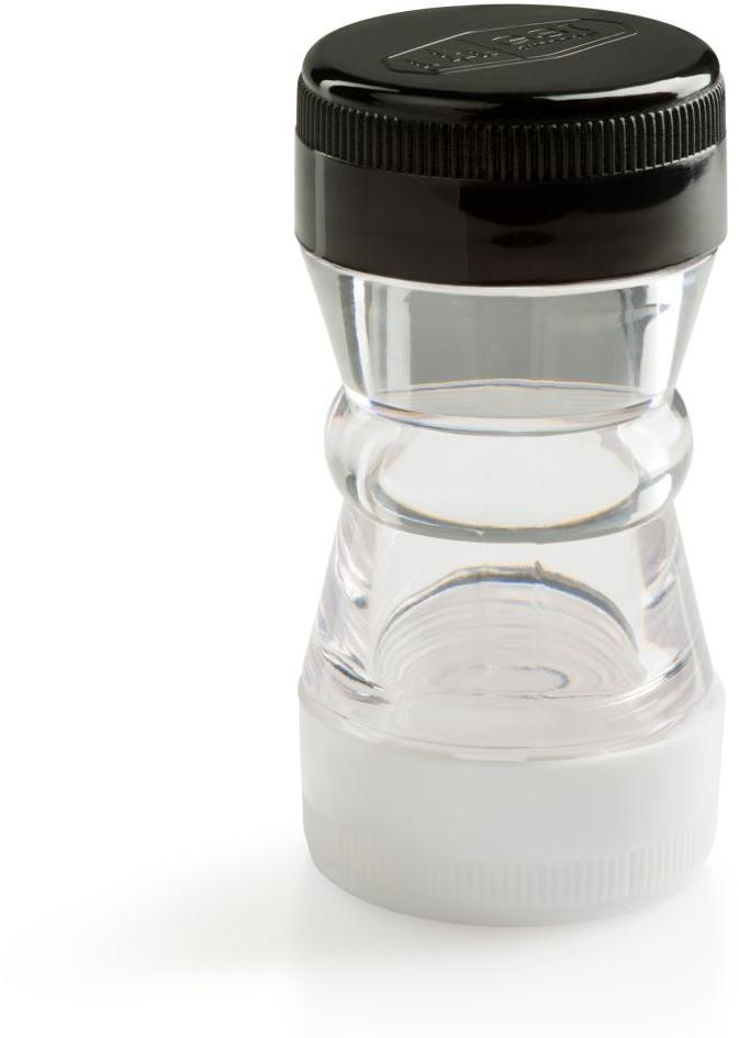 Kompakter Salz- und Pfefferstreuer mit wasserdichten Verschlusskappen. BPA frei. Technische Daten: Material: Copolyester Inhalt: 24 ml ( 9 ml und 14 ml ) Maße (B x T x H): 3,2 × 3,2 × 7 cm Gewicht: 70 g