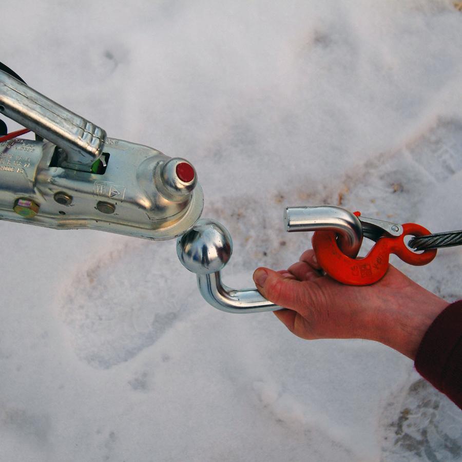 Mit der Rangierhilfe und einem Abschleppseil als Verbindung zwischen Zugfahrzeug und Anhänger wird es ermöglicht, das Zugfahrzeug auf festen Untergrund zu stellen und somit den Anhänger zu bergen. Die Rangierhilfe ist nicht zum Abschleppen im öffentlichen Straßenverkehr zugelassen. Kugel ø 50 mm. Sicheres und schnelles Befestigen des Abschleppseils oder der Abschleppstange an der Deichsel des Anhängers. Die Rangierhilfe wird einfach in die Kupplung des Anhängers eingerastet. Der Angriffspunkt des Hakens…