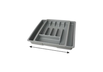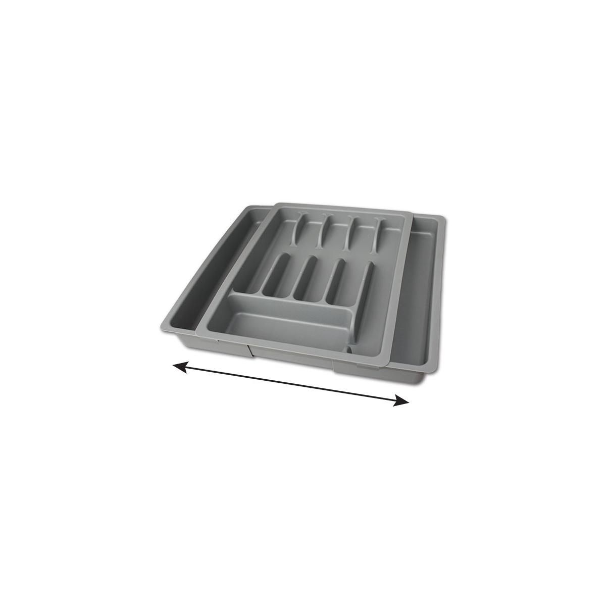Der Besteckkasten ist ausziehbar und kann somitin der Breite verändert werden. Technische Daten: Maße: 290/475 x 380 x 63 mm Farbe: grau