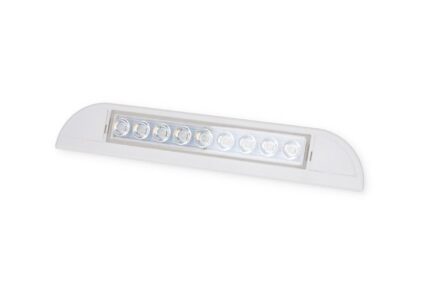 Kompakte LED-Leuchte für den Eingangsbereich an Wohnwagen oder Reisemobil. Technische Daten: Spannung 12 V 9 LEDs Leistung 5 W Lichtstrom 400 lm Lichtfarbe 4000K Schutzvorrichtung IP44 Abmessungen 23 x 3 x 3,9 cm.