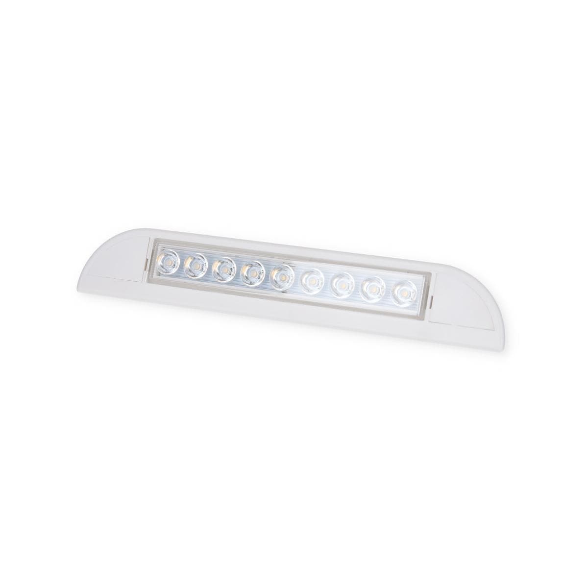 Kompakte LED-Leuchte für den Eingangsbereich an Wohnwagen oder Reisemobil. Technische Daten: Spannung 12 V 9 LEDs Leistung 5 W Lichtstrom 400 lm Lichtfarbe 4000K Schutzvorrichtung IP44 Abmessungen 23 x 3 x 3,9 cm.