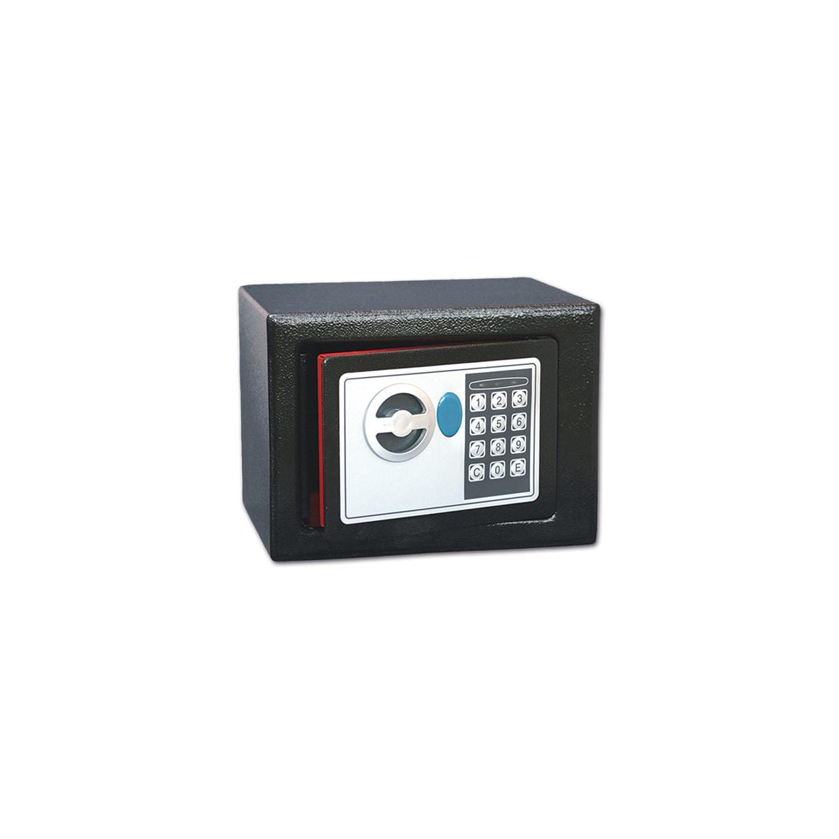 Mini-Safe digital, mit numerischer Tastatur. Die Stromversorgung erfolgt über 4 AA-Batterien. Im Notfall kann der Safe auch mit einem Schlüssel geöffnet werden. Technische Daten: Außenmaß: 172 x 230 x 171 mm Innenmaß: 165 x 220 x 165 mm Türstärke: 4 mm Wandstärke: 2 mm Gewicht: 4 kg
