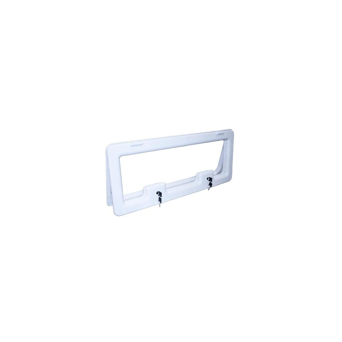 Rahmen aus hochwertigem und witterungsbeständigem Kunststoff Mit Schloss und Schlüssel Zur Anfertigung einer Außenklappe Ausschnitt wird in die Klappe als Füllung eingesetzt Außenmaß: 840 x 345 mm Ausschnittmaß: 800 x 300 mm Lichtes Maß: 780 x 280 mm