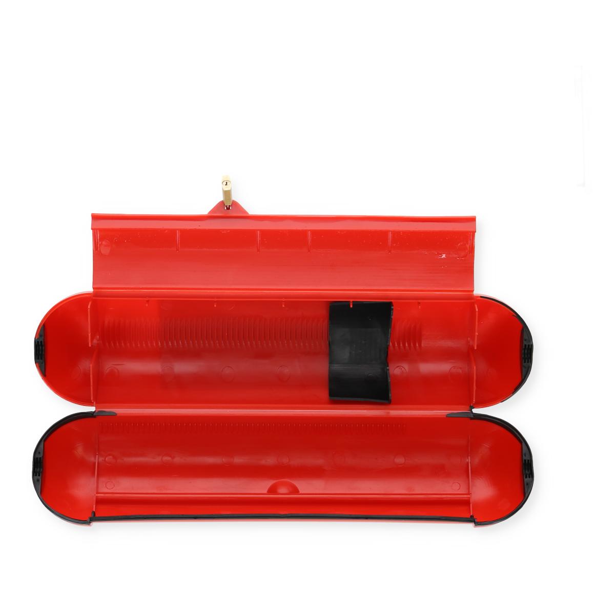 Kabelsafe für die CEE-Verbindung mit Gummidichtung und Schloss Schützt vor Feuchtigkeit, Nässe und Regen sorgt für eine sichere Verbindung Kein unbeabsichtigtes Auseinanderziehen möglich Technische Daten: Farbe: rot Material: Kunststoff Abmessungen: ca. 30,5 x Ø 9 cm