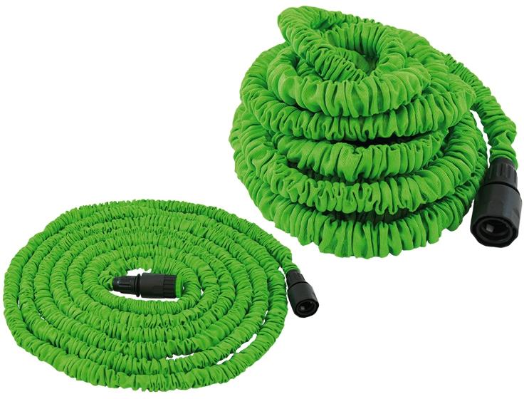 Ziehharmonika-Effekt: Wasser läuft durch den Gartenschlauch und dadurch dehnt sich dieser wie durch Magie zur dreifachen Länge. Sobald das Wasser abgedreht wird, zieht er sich von selbst wieder auf die urspüngliche Länge zusammen. inkl. Universal-Schnellkupplung und Adapter für verschiedene Wasserhahn-Größen Technische Daten: max. Druck: 2,5 bar Schlauchinnendurchmesser: 9 mm Innenmaterial: 100 % Naturlatex Schlauchlänge: 7- 22,5 m Gewicht: ca. 1 kg
