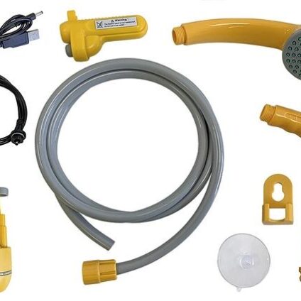 Wenn Sie sich schnell abspülen wollen und keine Dusche zur Verfügung haben, können Sie diese kompakte Handbrause mit Batterie in Betracht ziehen. Der große Vorteil dieser Handbrause ist, dass Sie keinen Stromanschluss benötigen, da sie über eine eigene Batterie verfügt. Sie können sie problemlos in einem Rucksack mitnehmen, wenn Sie wandern gehen. Stellen Sie die Pumpe in einen Eimer mit Wasser oder vielleicht in einen See, schalten Sie sie ein und genießen Sie eine schöne Dusche. Mit dem mitgelieferten…