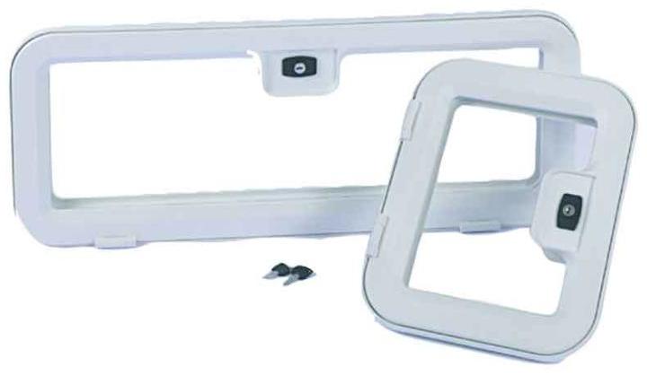 Ausgeschnittenes Blech wird in den Klappenrahmen eingesetzt. Optisches Erscheinungsbild des Fahrzeuges bleibt erhalten. Innerer Kunststoffrahmen schafft guten Übergang zum Innenraum. Stabiles Schloß mit 2 Sicherheitsschlüsseln. Für alle Wandstärken. *zum Ausschnittmaß ringsum 2 mm für den Rahmen hinzurechnen.