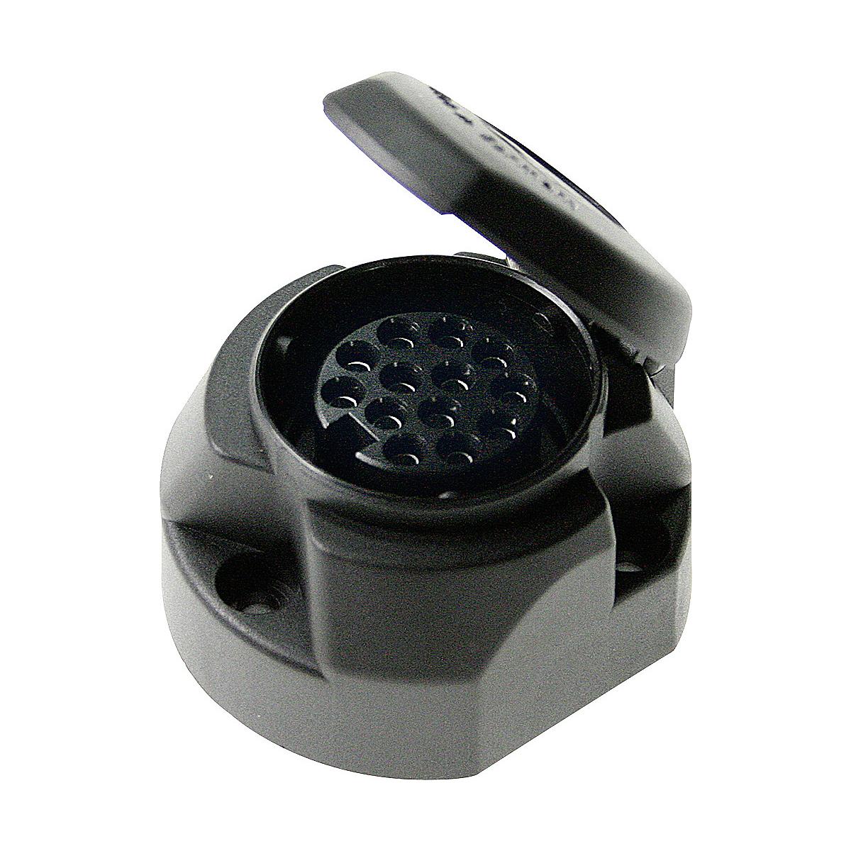 Steckdose 13-polig mit Abschaltautomatik des PKW-Nebelschlusslichtes bei Hängerbetrieb.