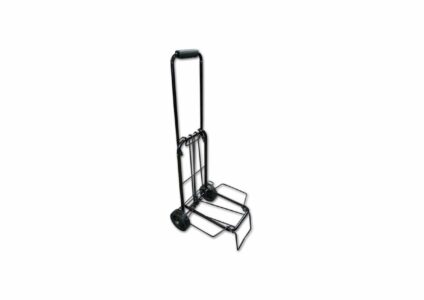 Leichter Transportwagen mit Riemen zur Befestigung für einen sicheren Transport. Zusammengeklappt nimmt der Trolley nur sehr wenig Platz ein. Technische Daten: Packmaße: 590 x 260 x 150 mm Maße Ablagefläche: 300 x 260 mm Belastbar bis: 30 kg Durchmesser Räder: 150 mm Gewicht: 2,13 kg