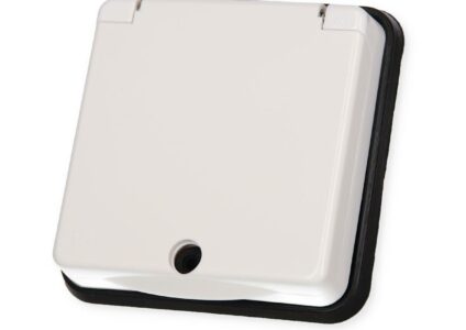 230 V Schuko-Steckdose mit wasserdichter Gummikappe Stecker mit Klappdeckel ohne Sicherungsaufnahme Maße: 88 x 67 x 88 mm Farbe: weiß