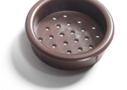 Lüftungsrosette (braun) aus Kunststoff ø 39 mm Ausführung: mit Abdeckrand Montage: zum Einlassen Lochung: ø 2 mm Technische Daten: Material: Kunststoff Farbe: weiß Maße (⌀ x T): 37 mm × 3,3 cm Packmaß: 3,2 × 3,3 × 0,8 cm Gewicht: 3 g