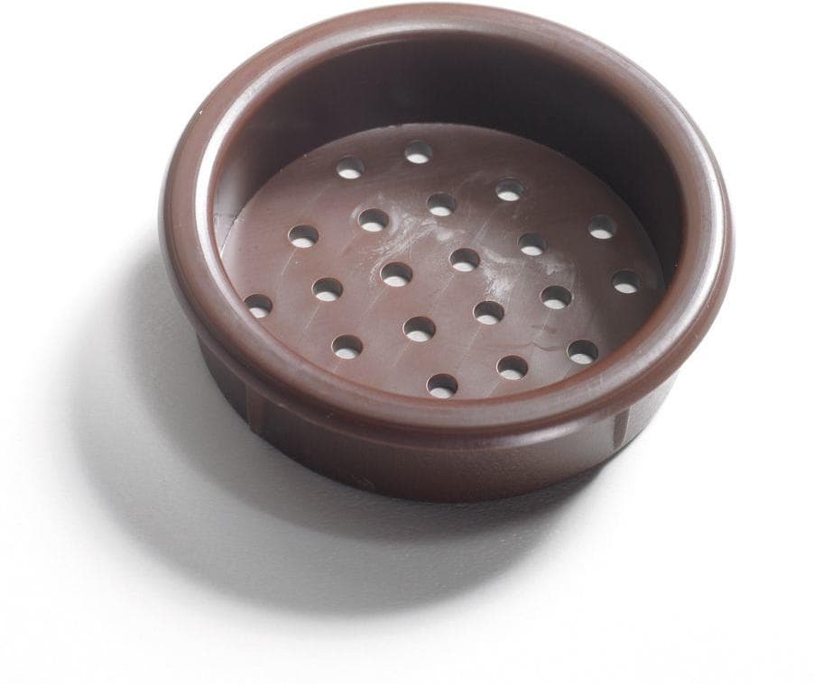 Lüftungsrosette (braun) aus Kunststoff ø 39 mm Ausführung: mit Abdeckrand Montage: zum Einlassen Lochung: ø 2 mm Technische Daten: Material: Kunststoff Farbe: weiß Maße (⌀ x T): 37 mm × 3,3 cm Packmaß: 3,2 × 3,3 × 0,8 cm Gewicht: 3 g