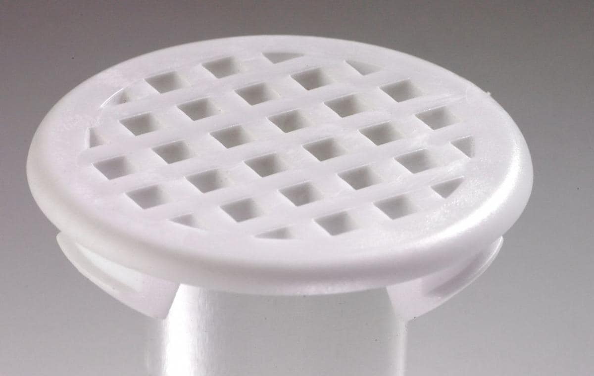 Lüftungsrosette (weiß) aus Kunststoff mit Rastnasen ø 37 mm Ausführung: mit Abdeckrand Montage: zum Einlassen Lochung 2,1 x 2,1 mm Technische Daten: Material: Kunststoff Farbe: weiß Maße (⌀ x T): 37 mm × 3,3 cm Packmaß: 3,2 × 3,3 × 0,8 cm Gewicht: 3 g