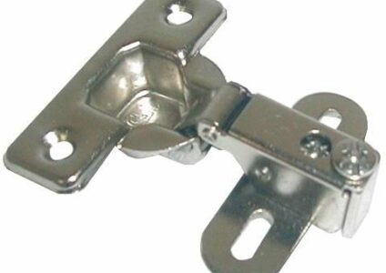 Scharnier in Metallausführung, verstellbar, geeignet für dünne Drehtüren, Toiletten- und Schranktüren. Caravanscharnier ohne Schließautomatik Technische Daten: ab Türdicke: 14 mm Öffnungswinkel: 95° Bohrbild: 38/7,5 mm Material: Aluminium Lieferumfang: 2 x Schrankscharnier
