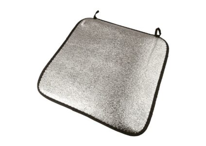 Alu-Sitzkissen schützt vor kalten Untergründen. Technische Daten: Maße: ca. 38 x 38 x 0,4 cm Farbe: silber Material: 100% Schaumstoff Beschichtung: 100% Aluminium
