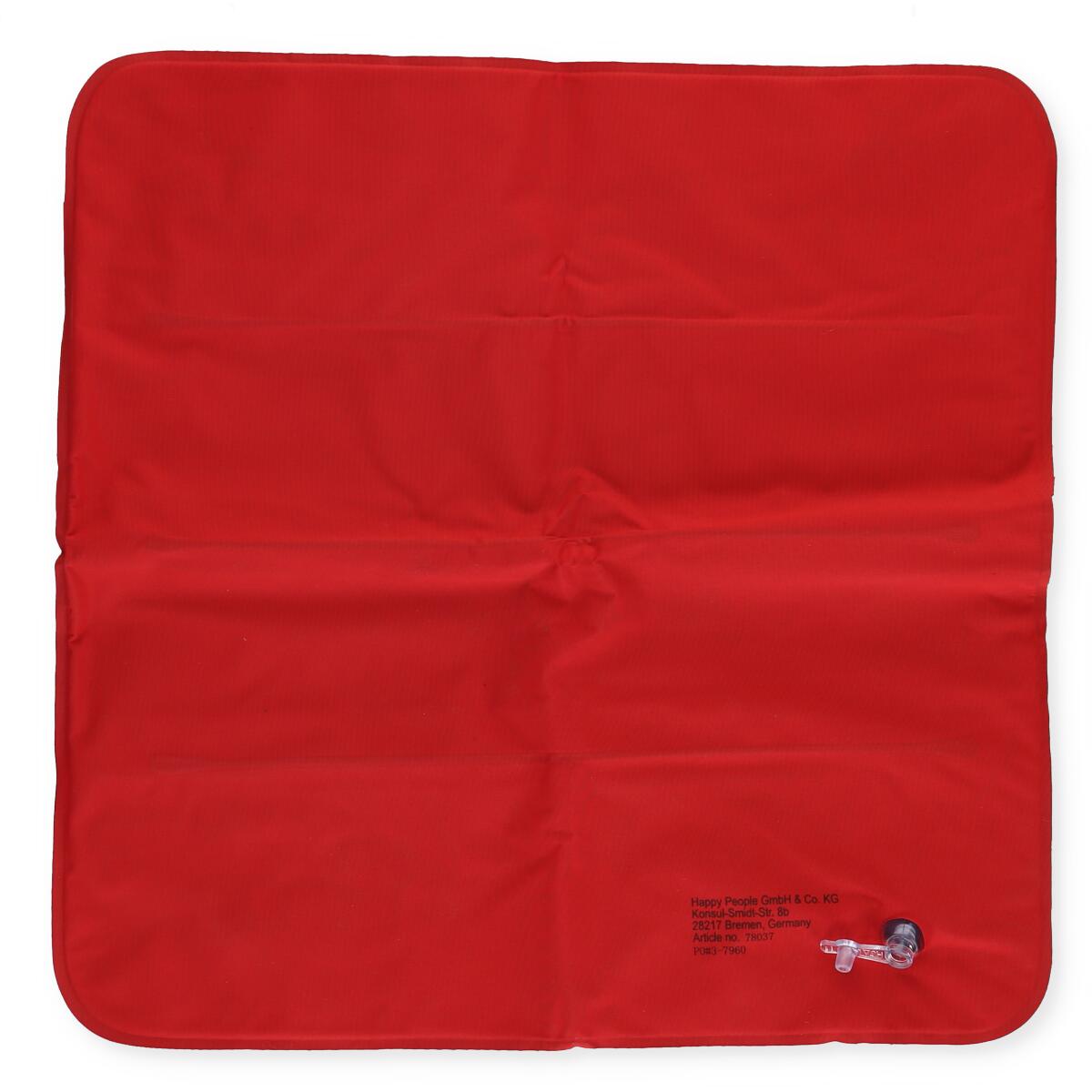 Wendekissen ist aufblasbar und mit Gummi-Baumwolle beschichtet. Eine Seite ist blau und die andere Seite ist rot. Technische Daten: Material: PVC mit Mikrofaser-Beschichtung Abmessungen: ca. 35 x 35 cm Farbe rot, blau
