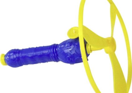 1 Katapult und 2 farblich sortierte Kreisel, Øca. 15 und 19 cm.