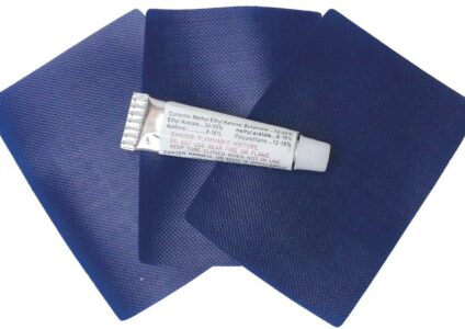 Besteht aus 3 rechteckigen (6,5 x 5 cm) Folienteilen und 1 Tube Spezialkleber (Inhalt 3 g). Gefahr! H225 Flüssigkeit und Dampf leicht entzündbar. H315 Verursacht Hautreizungen. H335 Kann die Atemwege reizen.