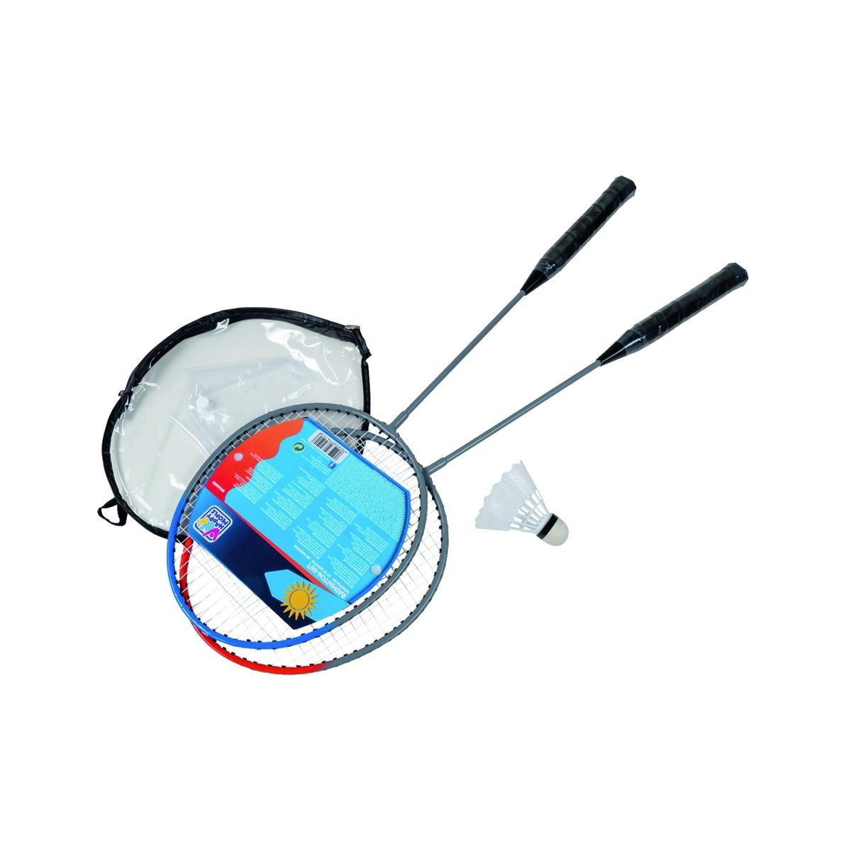 Ganz-Stahl-Rahmen mit Schutzösen und weißer Bespannung. Lieferumfang: 2 Schläger, 1 Ball Hinweis: Hierbei handelt es sich um eine farbliche Sortierung. Es erfolgt eine zufällige Auswahl der Farbe, keine Vorauswahl möglich.