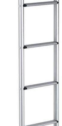 Hergestellt aus rostfreiem Aluminium mit einem Rohr-ø von 30 mm. Die Leiterverfügtüber einen rutschfest-geriffelten Auftritt und ist leicht zu montieren. Heckleiter mit 6 Sprossen Trittbreite 24 cm Länge 145 cm Breite 30,5 cm Abstand vom Heck des Fahrzeugs 14,5 cm Nettogewicht: 4,5 kg Lieferumfang: 1 x Leiter inklusive Montagezubehör