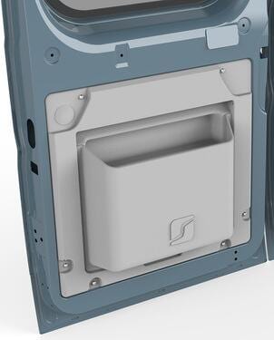 Panel mit Aufbewahrungsfach, geschlossen.Technische Daten:Breite: 670 mmHöhe: 618 mmTiefe: 108 mmGewicht: 2.3 kgMaterial: ABS+ASAFarbe: grau