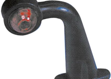 Umrissleuchte mit Gummiarm für stehenden Anbau. Höhe 185 mm.Schwarzes Gehäuse mit Positionslicht rot (hinten) und weiß (vorne) Maße: 171,5x181x68 mm