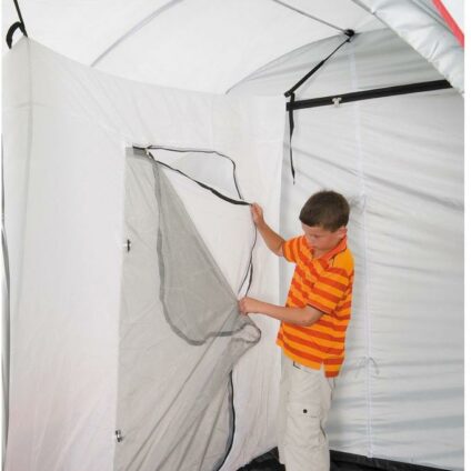 Das perfekte Gästezimmer. Mit der komfortablen Schlafkabine erweitern Sie Ihren Wohnraum im Handumdrehen um 2 komfortable Schlafplätze. Perfekt auch für Familien mit Kindern oder wenn sich fürs lange Wochenende Besuch ankündigt. Die Schlafkabine hat ein kleines Packmaß und sollte bei keiner Camping-Reise fehlen. Technische Daten: Material: 100 % PES Polyester Bodenwanne: 100 % PE Polyethylen für: Easy Travel II, Travel Light Maße (B x T x H): 120 × 200 × 190 cm Gewicht: 3,3 kg