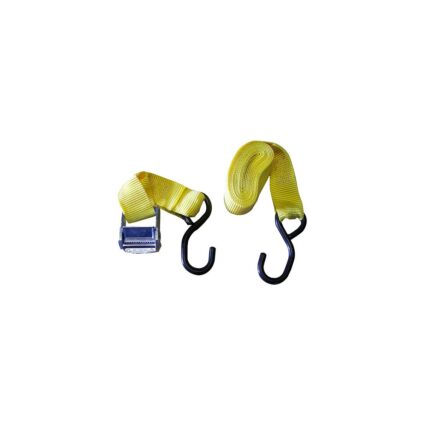 Zurrgurt zweiteilig mit Ratsche. PVC beschichteter S-Haken. Technische Daten: Material: Polyester Farbe: gelb Länge: 200 cm Breite: 2,5 cm Belastbarkeit: 680 kg Höhe Packmaß: 13 cm Breite Packmaß: 17 cm Tiefe Packmaß: 5 cm Gewicht: 0,44 kg