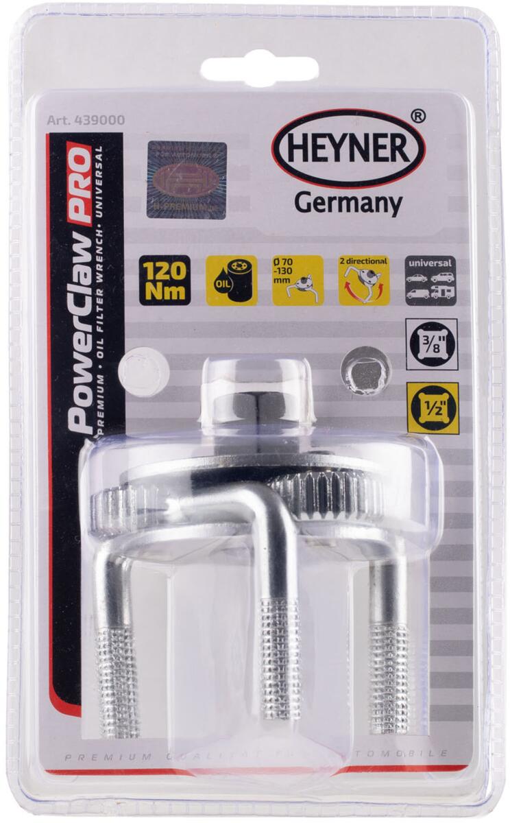 Der HEYNER Power Claw Ölfilterschlüssel garantiert ein müheloses Lösen und Anziehen von Ölfiltern, selbst in engen Einbauraumverhältnissen, und bietet dank seiner robusten Konstruktion höchste Zuverlässigkeit und Langlebigkeit.Technische Daten:Abmessungen: 90 x 90 x 90 mmGewicht: 0,63 kgAufnahme Zoll: 1/2 und 3/8 ZollDrehmoment: 120 NmDurchmesser von bis: 60 – 120 mmRatschenaufnahme: JaVerpackungseinheit: StückLieferumfangÖlfilterschlüssel