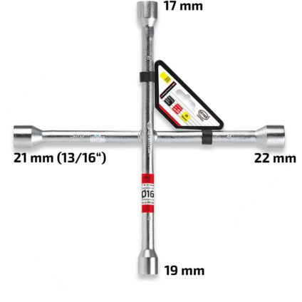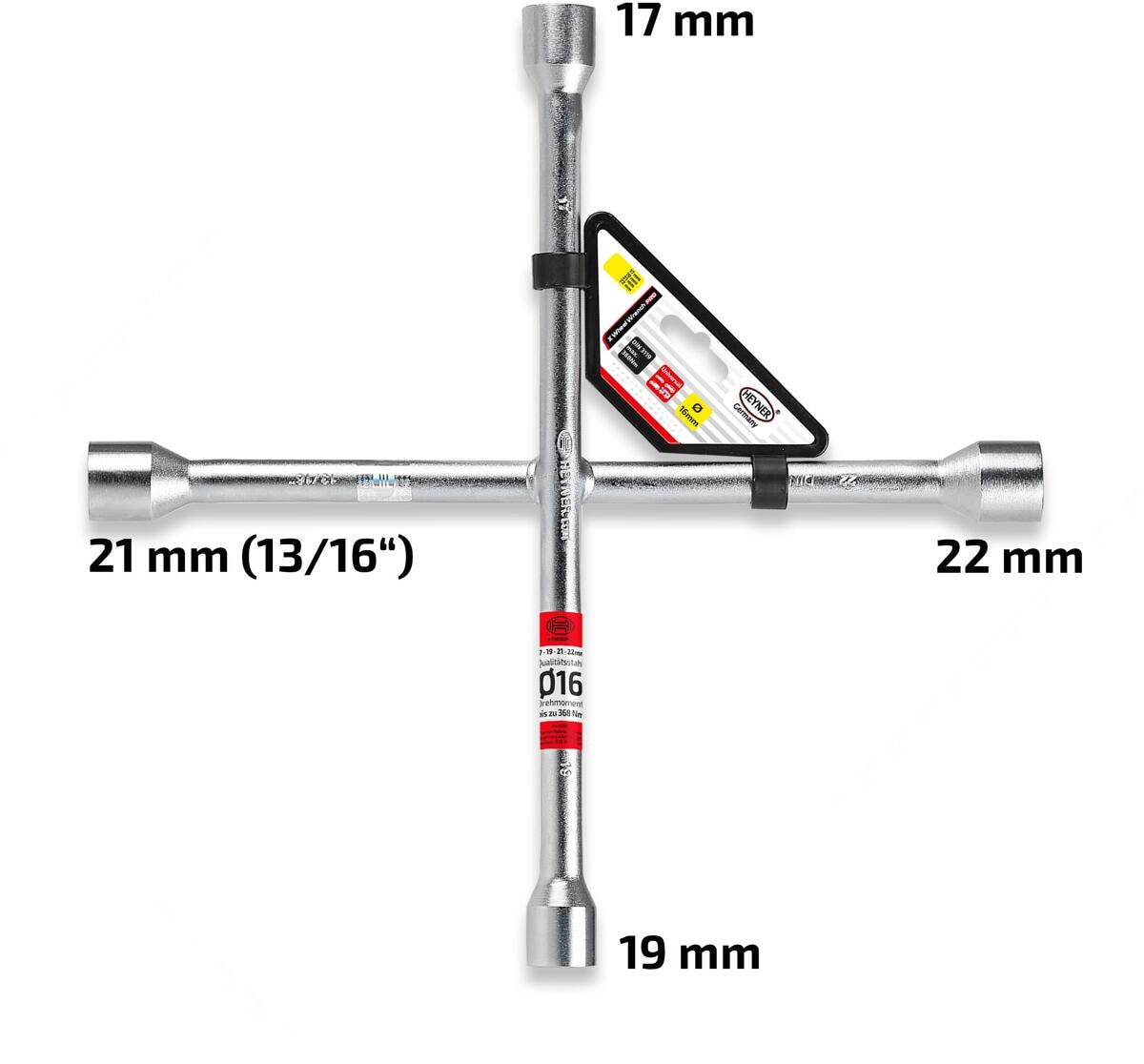 Der HEYNER Radkreuzschlüssel aus Chrom sorgt für mühelosen Reifenwechsel und maximale Hebelwirkung – ein unverzichtbares Werkzeug für Autofahrer.17mm – 19mm – 21mm (13/16) – 22mmØ 15mm Qualitätsstahl verchromtDrehmoment bis zu 368NmDIN 3119Technische Daten:Abmessungen: 32x360x360Gewicht: 1.25 kgEAN 4028224420004Drehmoment 368 NmDurchmesser 15 mmNuss 17/1921 (13/16) /22 mmVerpackungseinheit StückLieferumfangRadkreuzschlüssel