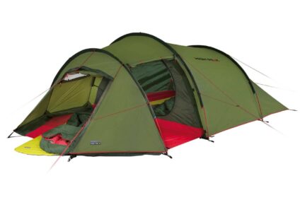 High Peak Falcon Tunnelzelt mit Vorbau, LW, 4-Personen, pesto/rot