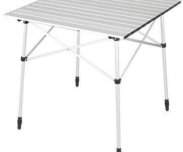 Leichtgewicht Alu Camping-Tisch mit rollbarer Tischplatte aus Alu Paneelen und 4 höhenverstellbaren Tischbeine. Leichte Montage kleines Packmaß Höhenverstellbare Füße Rollbare Tischplatte Packsack 300 D Polyester Technische Daten: Material: Aluminium Maße: 70 x 70 x 70 cm Packmaß: 102,5 x 15,5 x 15,5 cm Gewicht: ca. 2,5 kg Max. Belastung: 30,0 kg Lieferumfang: 1x Tisch inkl. Transporttasche