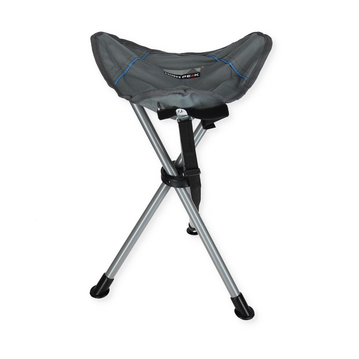 Dreibeinhocker mit kompaktem Packmaß. Ideal für Camping, Festivals und Naturliebhaber. stabiles pulverbeschichtetes Stahlrohrgestänge hochwertiger Polyester Oxford Bezug inklusiv Tragegurt Technische Daten Material: Bezug: 199% Polyester 600D Rahmen: 19 mm Stahl, pulverbeschichtet Belastbarkeit: max. 100 kg Maße: 33x33x45 cm Gewicht: 650 g Farbe: grau/blau Lieferumfang: Hocker, inklusive Schultergurt