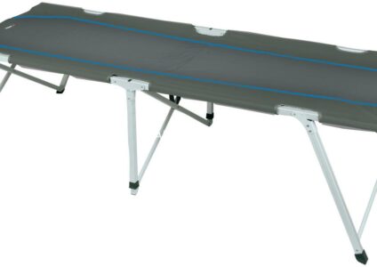 Hochwertiges Camping-Faltbett in XL Größe. Mit wenigen Handgriffen auf- und abgebaut. Extra stabiles Vierkant-Aluminiumgestell. Bezug aus robustem Oxford Polyester. Inklusiv Tragetasche. Technische Daten: Material: Aluminium 25x25mm – 100% Polyester Oxford Größe: 204 x78,5 x51 cm Gewicht: 8,1 kg Belastbarkeit: Max. 120 kg Farbe:dunkelgrau/blau Lieferumfang: 1x Feldbett inkl. Tragetasche