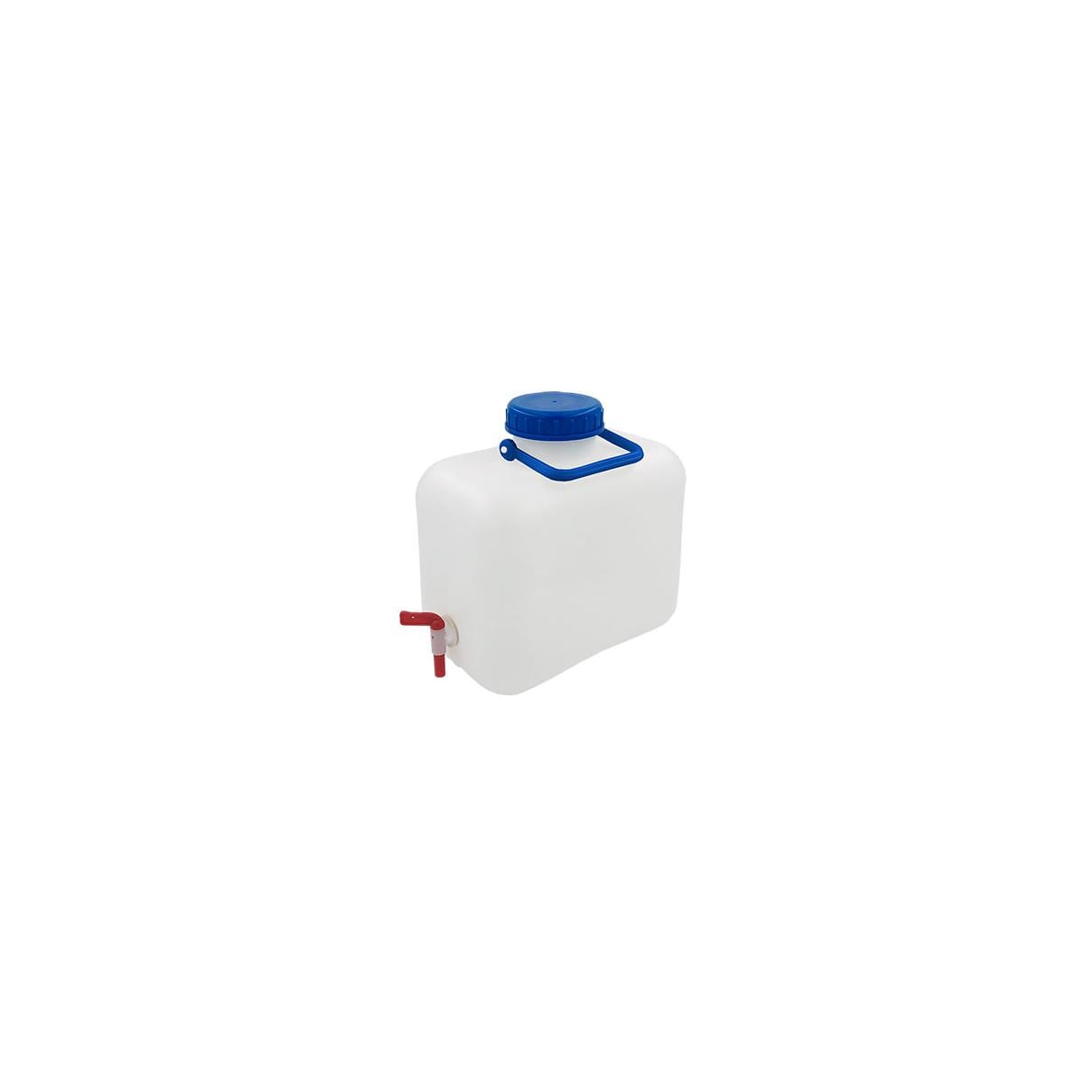 Wasserkanister mit Bügelgriff. extra große Öffnung DIN 96 (80 mm) für leichte Innenreinigung per Hand lebensmittelecht mit regulierbarem Wasserhahn Bügelgriff BPA frei Technische Daten Material: Polyethylene Volumen: 10 Liter Maße: 28 x 28 x 17 cm Farbe: transparent