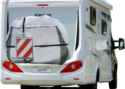 Die neue CONCEPT ZWOO ist eine ringsum geschlossene Hülle in welcher der Fahrradträger mitsamt den Rädern geschützt untergebracht ist, wie auf dem Foto zu erkennen ist. An der Rückwand befinden sich für die Haltebügel zwei Reißverschlüsse in unterschiedlichen Höhen, durch welche die Halterungen geführt werden. Somit ist eine dichte Anpassung an unterschiedliche Träger möglich. Zusätzlich kann die Hülle außen durch diverse Spanngurte gesichert werden. Mit großer Glasklartasche für Warntafel. Die Montage…