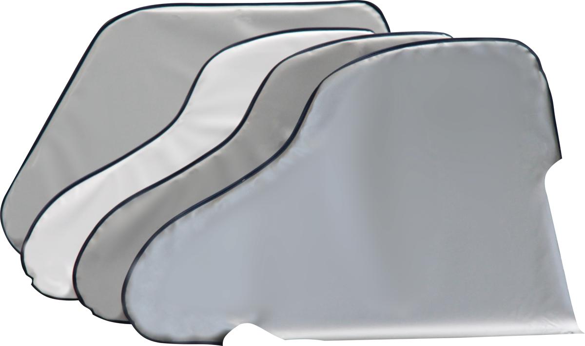 Die große Taschenform dieser aus Folie bzw. strapazierfähigem Nylongewebe bestehenden Haube ermöglicht problemloses Aufziehen und optimale Passform. Die Haube ist wasserdicht verschweißt, die Nahtenden sind für größere Stabilität zusätzlich eingefasst. Als zusätzliche Befestigungsmöglichkeit sind Gummispanner im Lieferumfang enthalten. Technische Daten: Material: 65 % PVC, 35 % Polyamid Größe: 12 Farbe: silber