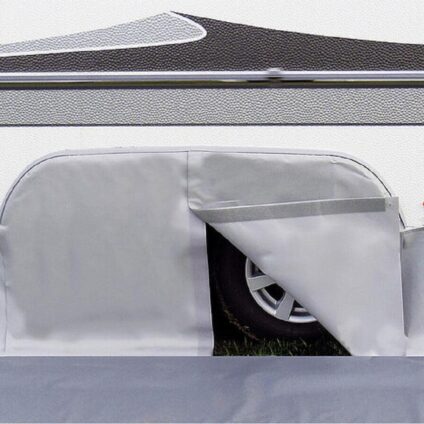 80 cm hoch. Aus winterfestem Planenmaterial (hellgrau), 1-farbig, ca.430 g/qm, exakt passend zu unseren Winter-Bodenschürzen gefertigt,inkl. Textilkeder, die Version Tandem verfügt über einen zusätzlichenKlettverschluss.